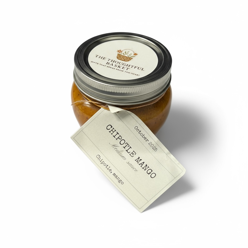 Crafted from our cherished family recipe, this small-batch Chipotle Mango sauce blends the tropical sweetness of ripe mangoes with the deep, smoky heat of chipotle peppers. The result is a perfectly balanced medium spice that enhances everything from grilled meats and tacos to roasted veggies or charcuterie boards.